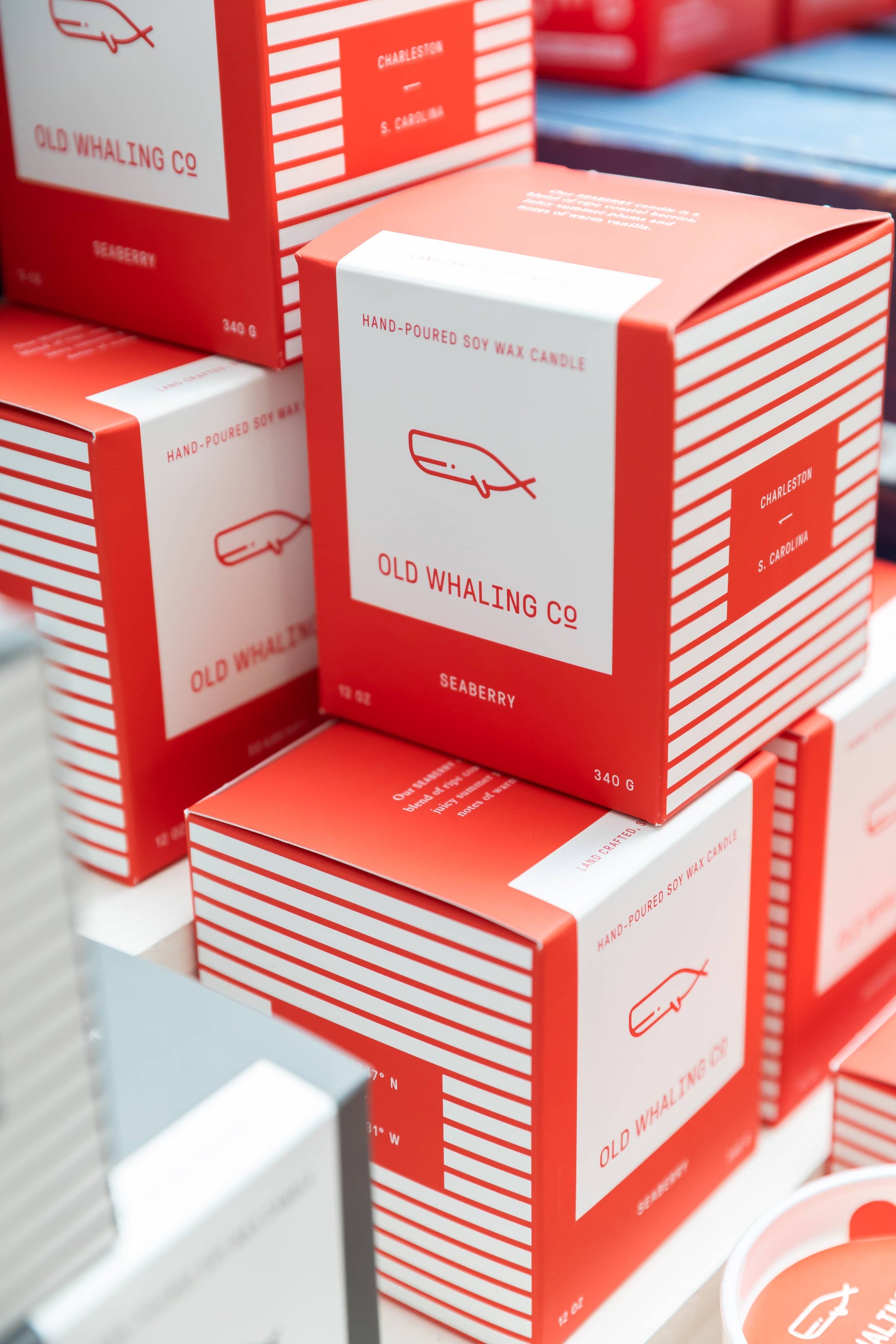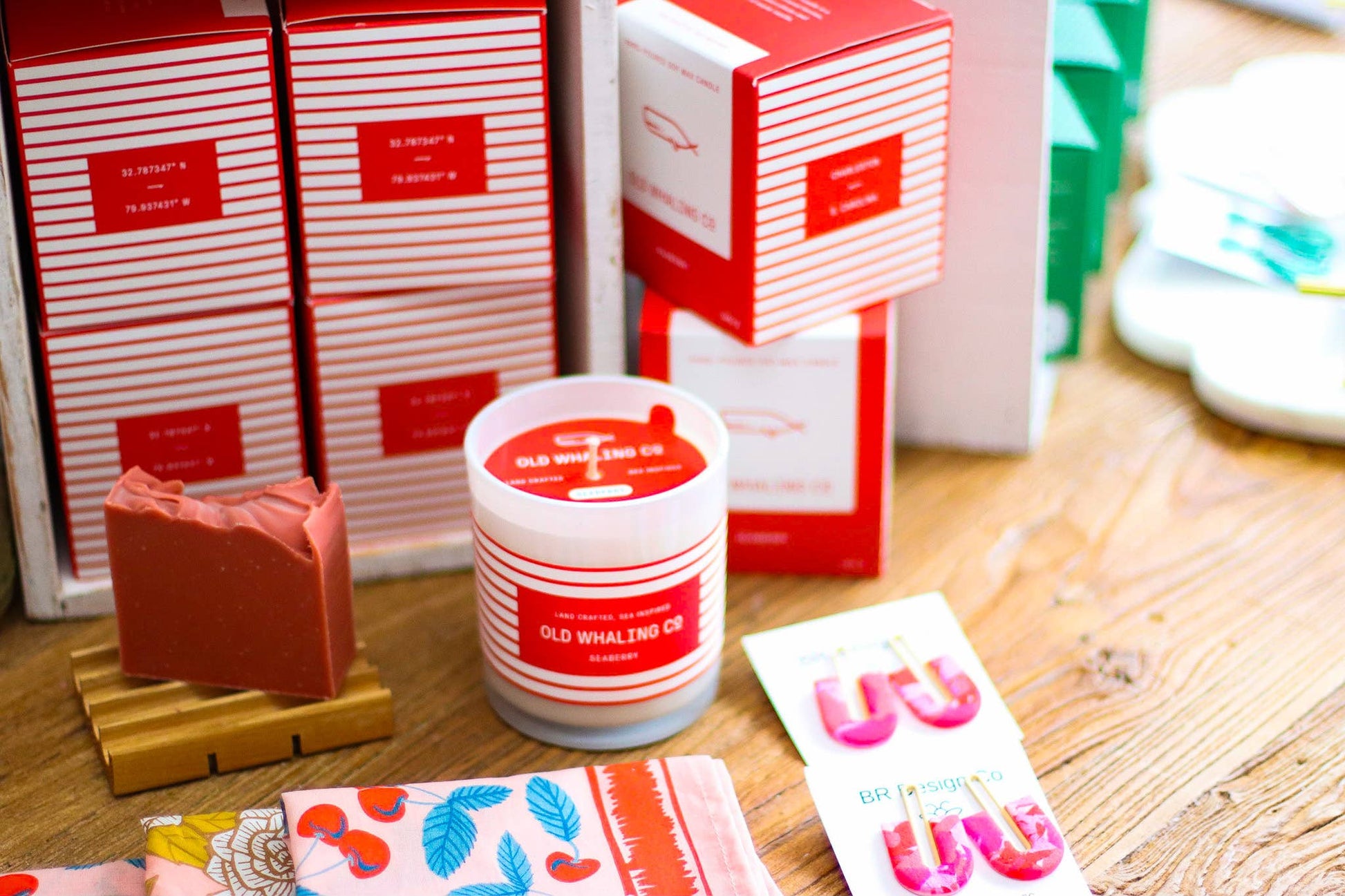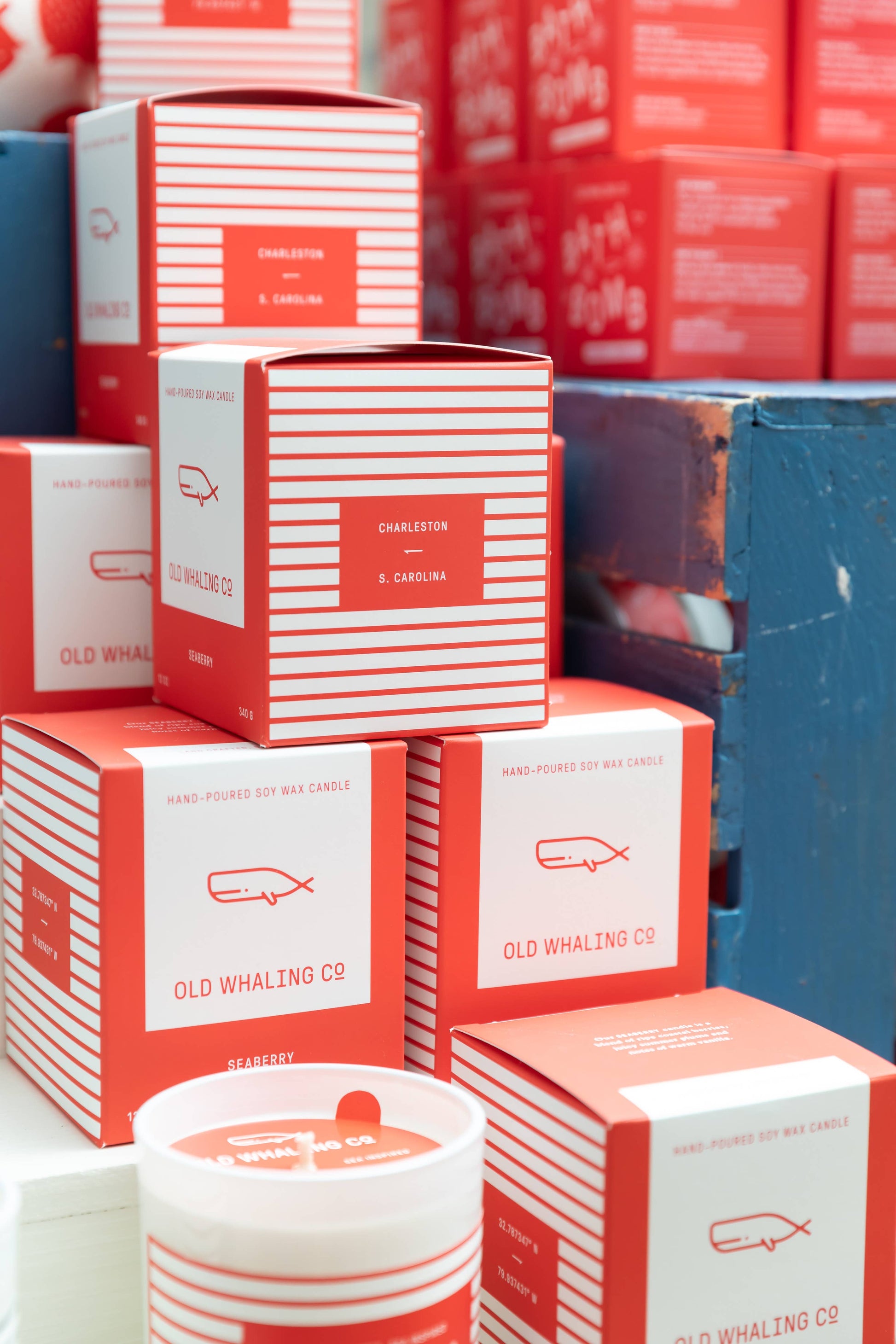 Our 12oz candles are hand-poured in historic Charleston, SC, and feature a lead-free cotton wick and an opaque white glass tumbler with a nautical-striped label design. Each come individually boxed.